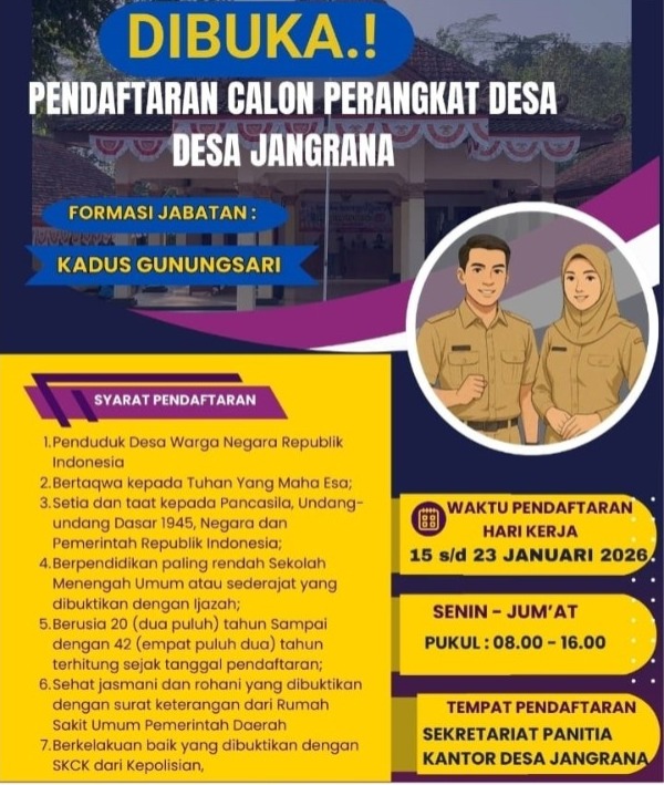 Dengan mengucapkan puji dan syukur kehadirat Allah SWT, kami sampaikan salam hangat bagi warga Desa Jangrana keseluruhan, Alhamdulillah pada tahun ini Pemerintah Desa Jangrana telah memiliki situs resmi. Adanya situs website ini dalam rangka mewujudkan Penyelenggaraan Desa secara transparan, akuntabel dan partisipatif.